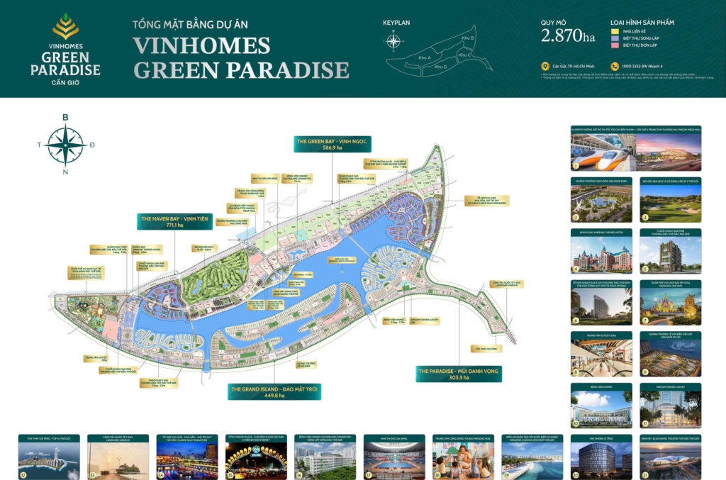 Khu Đảo Mặt Trời (The Grand Island) là phân khu trung tâm, biểu tượng, lễ hội, thương mại – giải trí của đại đô thị biển Vinhomes Green Paradise tại Cần Giờ, nổi bật với diện tích lớn (khoảng 449.8 – 480 ha), sở hữu đường bờ biển dài và biển hồ nước mặn nhân tạo Paradise Lagoon lớn, quy hoạch các sản phẩm shophouse, biệt thự, khách sạn mini, nhà hát Sóng Xanh, quảng trường biển, phố thương mại sầm uất, phục vụ cả an cư và nghỉ dưỡng đẳng cấp quốc tế với pháp lý rõ ràng.