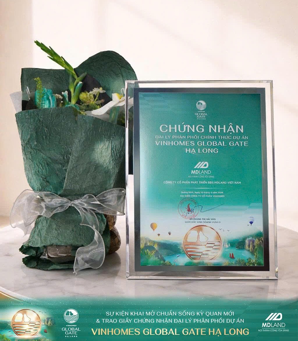Sáng ngày 10/04/2026, MDLand Việt Nam chính thức được vinh danh là đại lý phân phối chiến lược của Vinhomes Global Gate Hạ Long – Thành phố kỳ quan bên Vịnh di sản Quốc tế đang tạo sức hút lớn trên thị trường bất động sản phía Bắc.