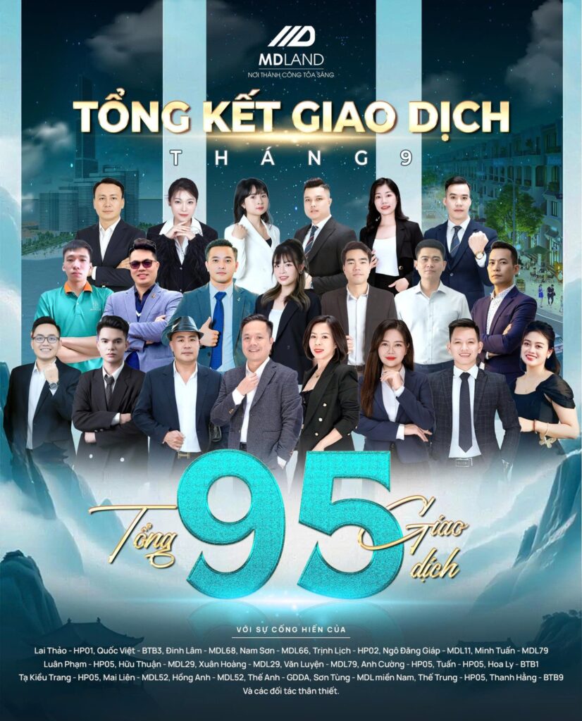 Tháng 9 khép lại, mở ra dấu mốc đầy tự hào của tập thể MDLand Việt Nam với 95 giao dịch thành công – con số không chỉ thể hiện năng lực bán hàng ấn tượng, mà còn là minh chứng cho tinh thần quyết tâm, đoàn kết và nỗ lực bền bỉ của toàn thể đội ngũ.